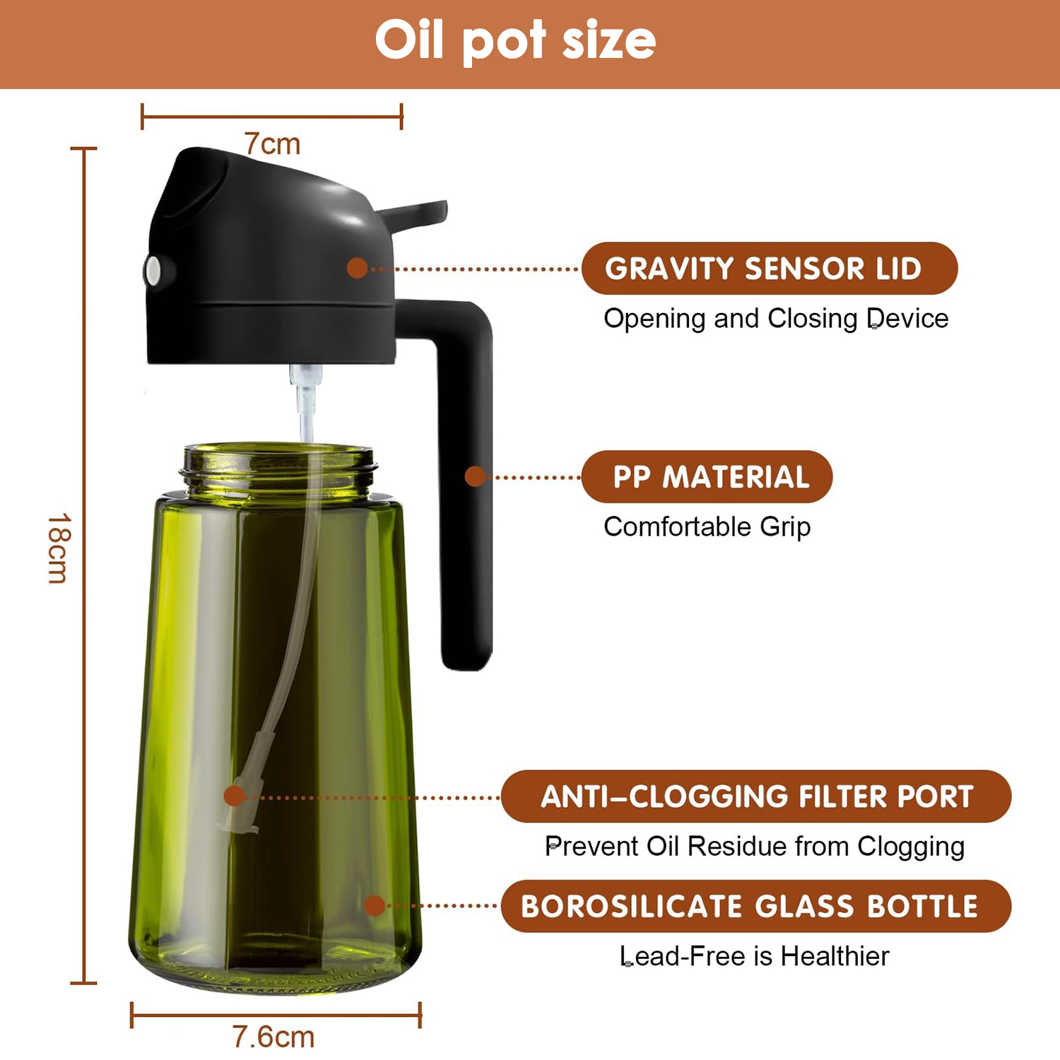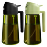 Set 2 sticle cu pulverizare pentru ulei/otet, BYONDSELF®, 2 in 1, Multifunctional, Control precis al uleiului, Capacitatea 470 ml, Material Sticla si PVC, Verde/Negru