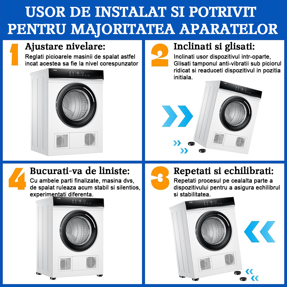 | 【Vantuze puternice】 Picioruse antivibratie cauciuc foloseste 19 ventuze unice pentru a oferi o aderenta puternica si pentru a va stabiliza masina de spalat, Creand o experienta de spalare mai silentioasa, Similara modului in care functioneaza un stabilizator pe o masina de spalat, Previne”mersul” si mentine masina de spalat suficient de silentioasa in timpul functionarii, Creand un mediu de spalatorie mai linistit pentru tine si familia ta |