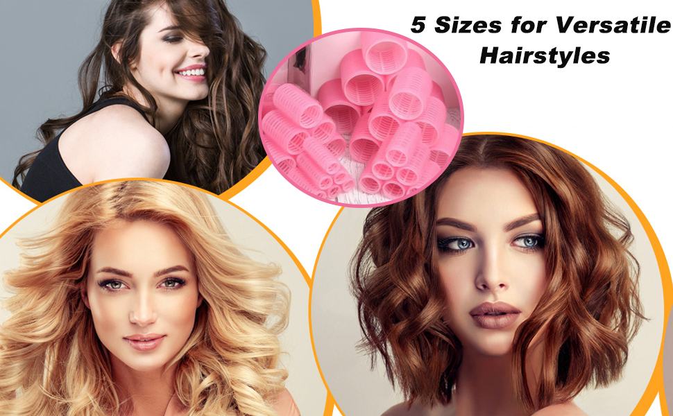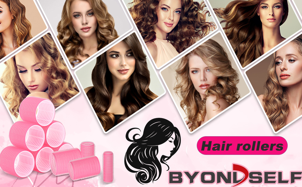 Set 65 Bigudiuri Profesionale de Par, BYONDSELF®,5 Marimi, cu Agrafe Par/Geanta Mana, pentru Volum si Bucle, Roz