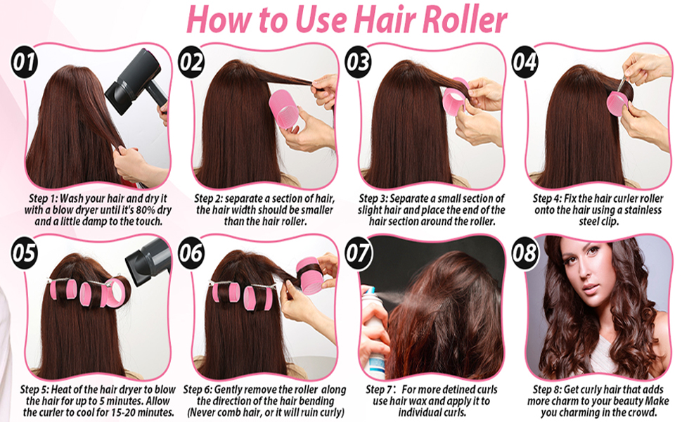 | Acest set de bigudiuri flexibile este usor de utilizat, permitandu-va sa obtineti bucle naturale cu usurinta. Este suficient sa le folositi cand parul este uscat aproximativ 80%. Designul lor unic va permite sa luati o suvita de par, sa o infasurati de la varf spre scalp si sa o fixati cu un ac de par, fara a fi nevoie de tehnici complicate. Asteptati cu rabdare cel putin 30 de minute pentru ca buclele sa se fixeze durabil. La desfacere, desfasurati usor parul in directia buclei pentru a evita incurcaturile si tractiunea, protejand astfel sanatatea firului de par.