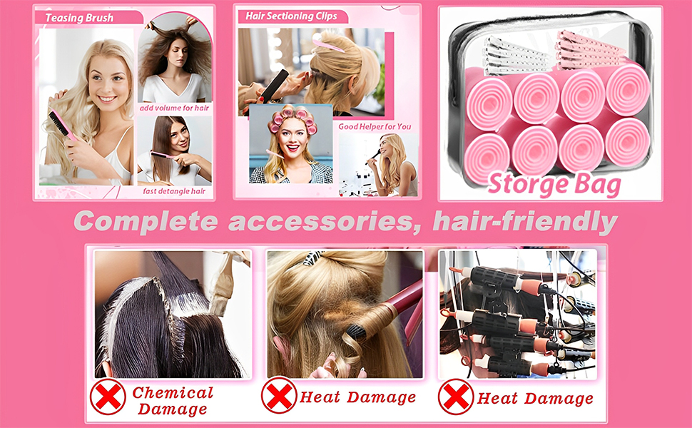 | Acest set bigudiuri utilizeaza tehnologii inovatoare de ingrijire a parului, evitand complet daunile cauzate de metodele traditionale de incretire. Fara incalzire la temperaturi inalte si fara aburi chimici, va ofera bucla perfecte, eliminand din radacina daunile termice si chimice. Designul sau unic cu cilindri mari si bigudiuri flexibile, combinat cu materiale de inalta calitate, modeleaza parul in bucle naturale si voluminoase fara a-l deteriora, iar utilizarea pe termen lung poate imbunatati starea parului, reducand semnificativ uscaciunea, bifurcatiile si incalceala.