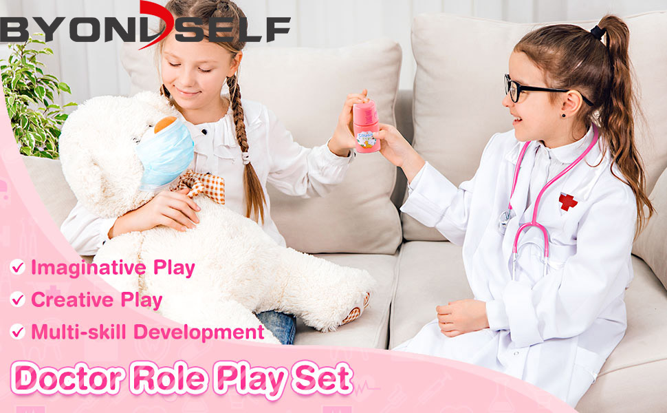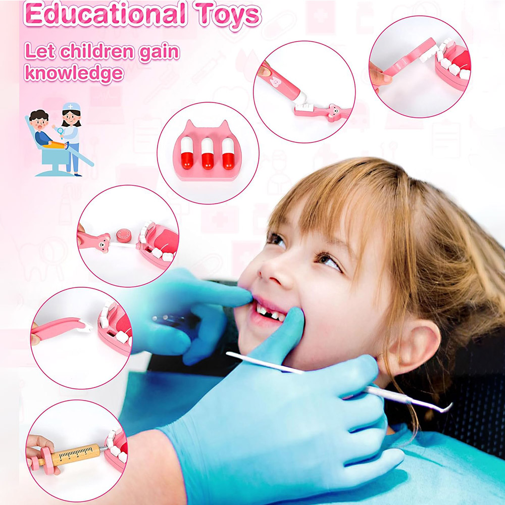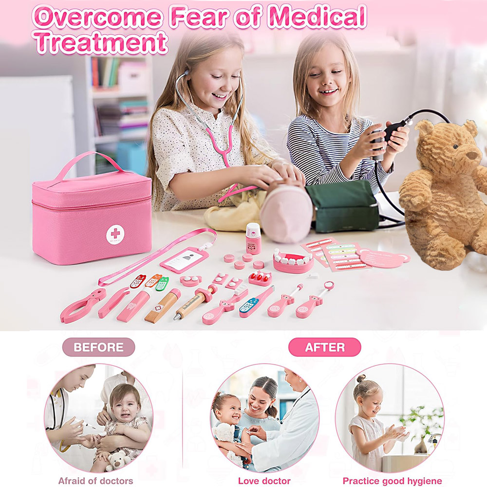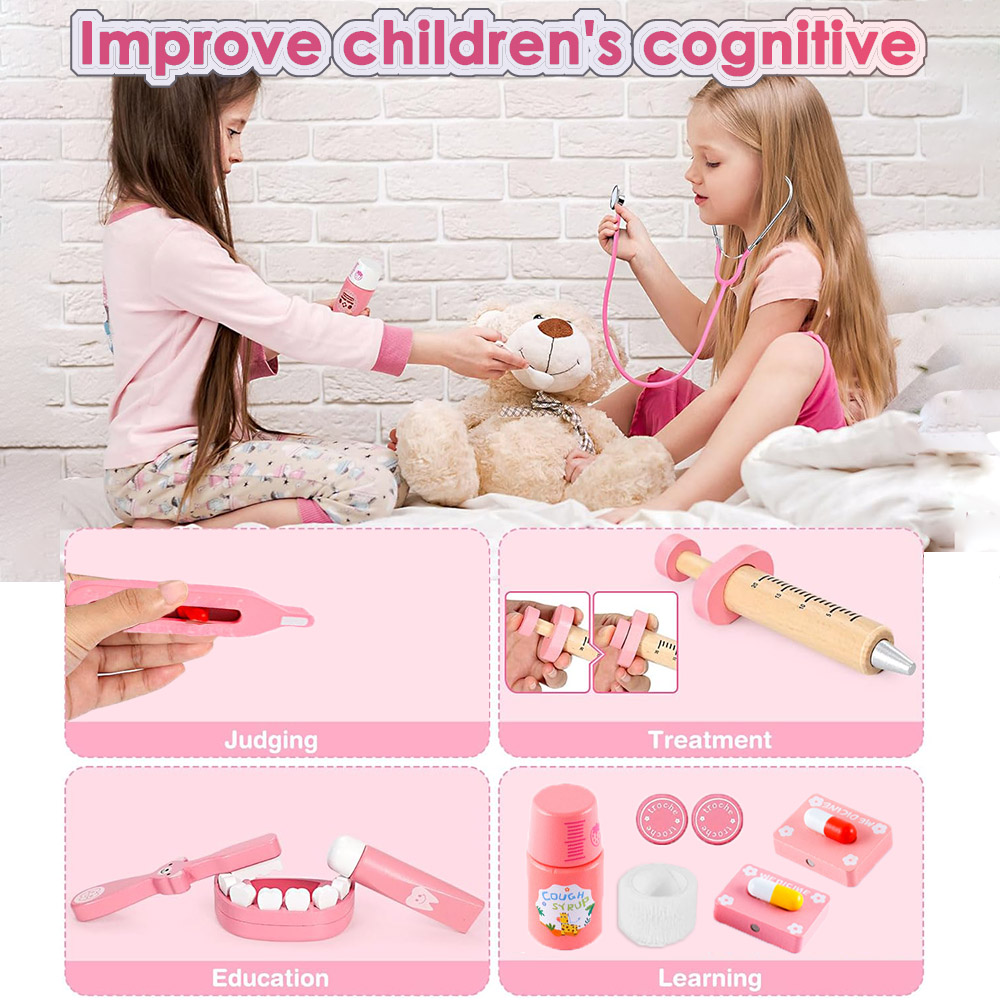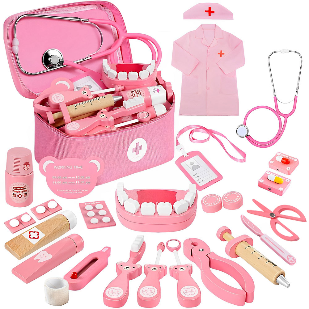 Set Joaca Doctor, din Lemn, BYONDSELF®, 27 Pieces, cu Trusa Medicala Copii, Stetoscop, Termometru, pentru Jocul de Rol al Medicului sau Dentistului, Cadou pentru Fete si Baieti, 3, 4, 5, 6 Ani, Multicolor