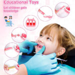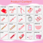 | 【Tip bogat de accesorii】 Set de joaca doctor cu o varietate de instrumente si accesorii medicale, permitand copiilor sa se cufunde pe deplin in rolul unui medic. Setul de doctor include 1 * geanta medicala, 1 * stetoscop, 1 * ID de lucru, 1 * foarfeca, 1*Model de dinte, 1* bisturiu, 1*cleste, 1*unguent, 1*pasta de dinti, 1*stick dentar,1*Observator, 1*Periuta de dinti, 1*seringa, 1*termometru,1*Cartel medical, 1*Oglinda, 1* tampon de bumbac,1*pansament,1*tableta, 1*tableta, 1*capsula, 1*sirop de tuse, 1* uniforma de asistenta si alte accesorii diverse permit copiilor sa joace liber rolul de medic/asistenta/stomatolog. |