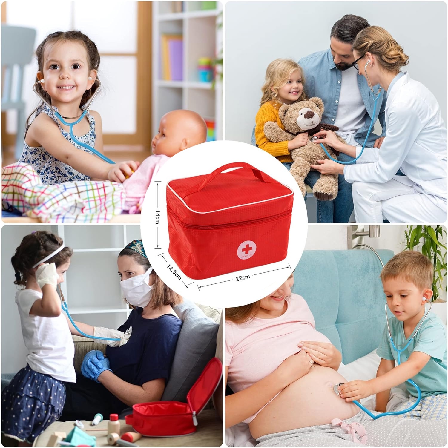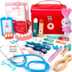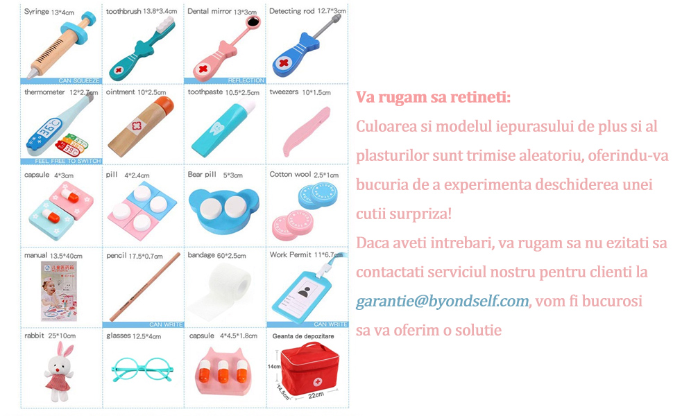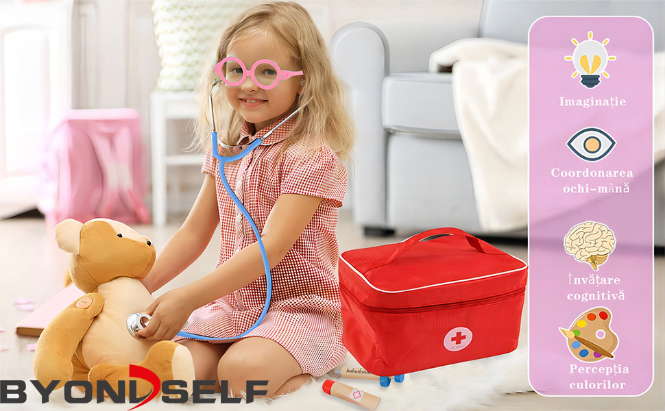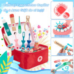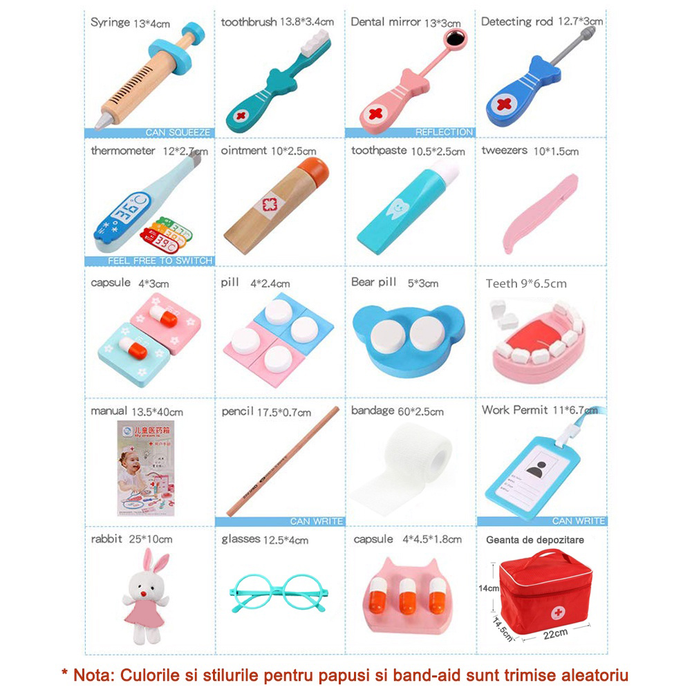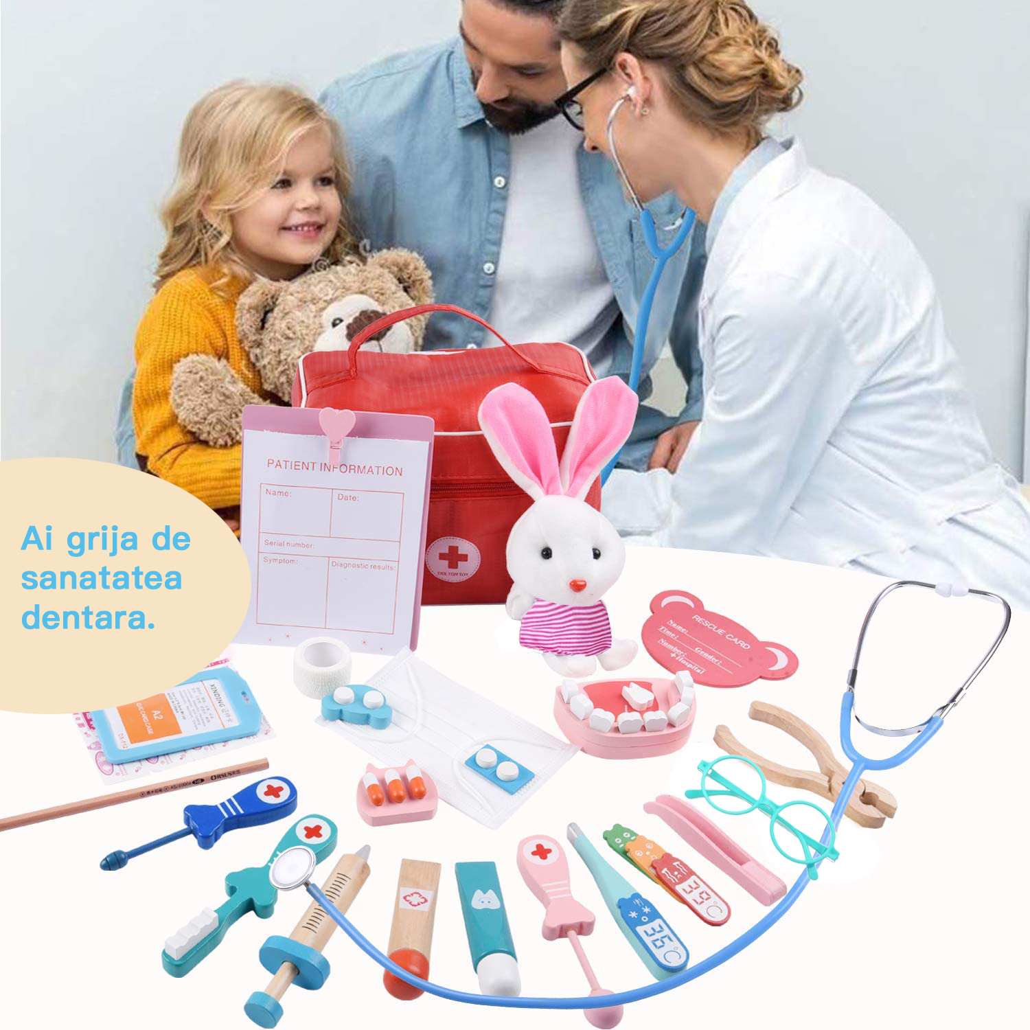 Set Joaca Doctor, din Lemn, BYONDSELF®, 27 Pieces, cu Trusa Medicala Copii, Stetoscop, Termometru, pentru Jocul de Rol al Medicului sau Dentistului, Cadou pentru Fete si Baieti, 3, 4, 5, 6 Ani, Multicolor