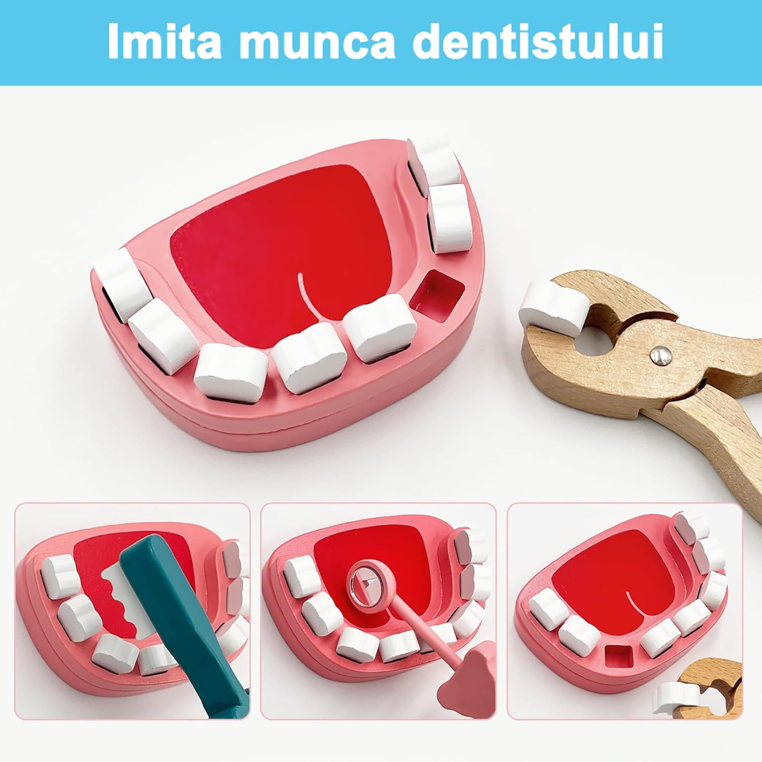 Set Joaca Doctor, BYONDSELF®, Lemn, Joc Creativ si Interactiv, 25 Pieces, cu Geanta de Depozitare, Halat, Stetoscop, Mulaj Dentar, 3 Ani+