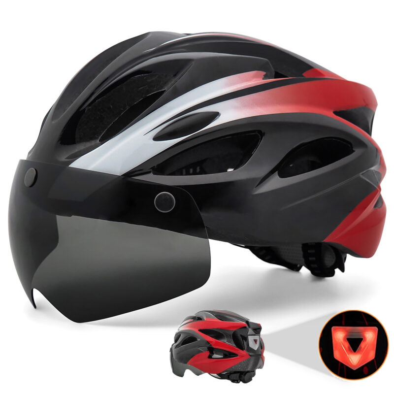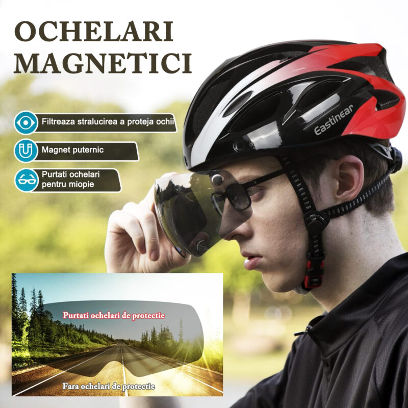 Casca protectie bicicleta, BYONDSELF®, cu LED Lumina Spate, Ochelari Magnetici, cu 18 Canale de Ventilatie, 58-62CM, Negru, Adulti