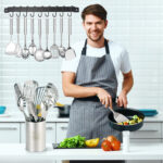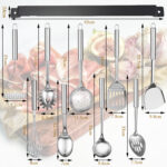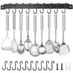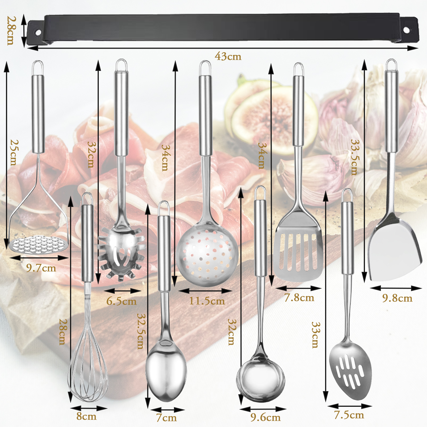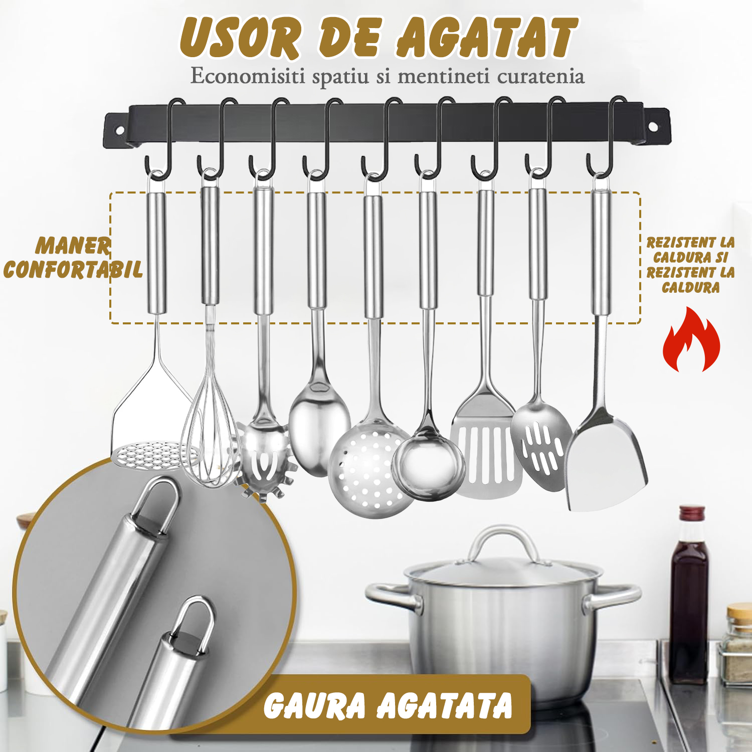 Set Ustensile de Bucatarie BYONDSELF®, 10 Piese, cu Suport de Perete si 10 Carlige, din Otel Inoxidabil, Termorezistente, Usor de Curatat