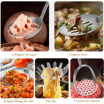 Include 9 instrumente diferite, inclusiv 1 lingura de supa, 1 filtru, 1 filtru mare, 1 lingura de prajit, 1 filtru mic, 1 lingura lunga de orez, 1 vermicelli, 1 batator de ou si 1 presa de usturoi Se potrivesc perfect diferitelor nevoi de gatit. |