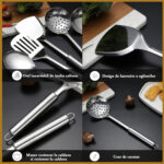 | Ustensile de bucatarie de calitate alimentara: Ustense de Bucatarie este fabricata din otel inoxidabil de inalta calitate, inodore si durabile.Aceste unelte de gatit nu contin substante nesanatoase din plastic, ceea ce le face alegerea perfecta pentru utilizarea zilnica.