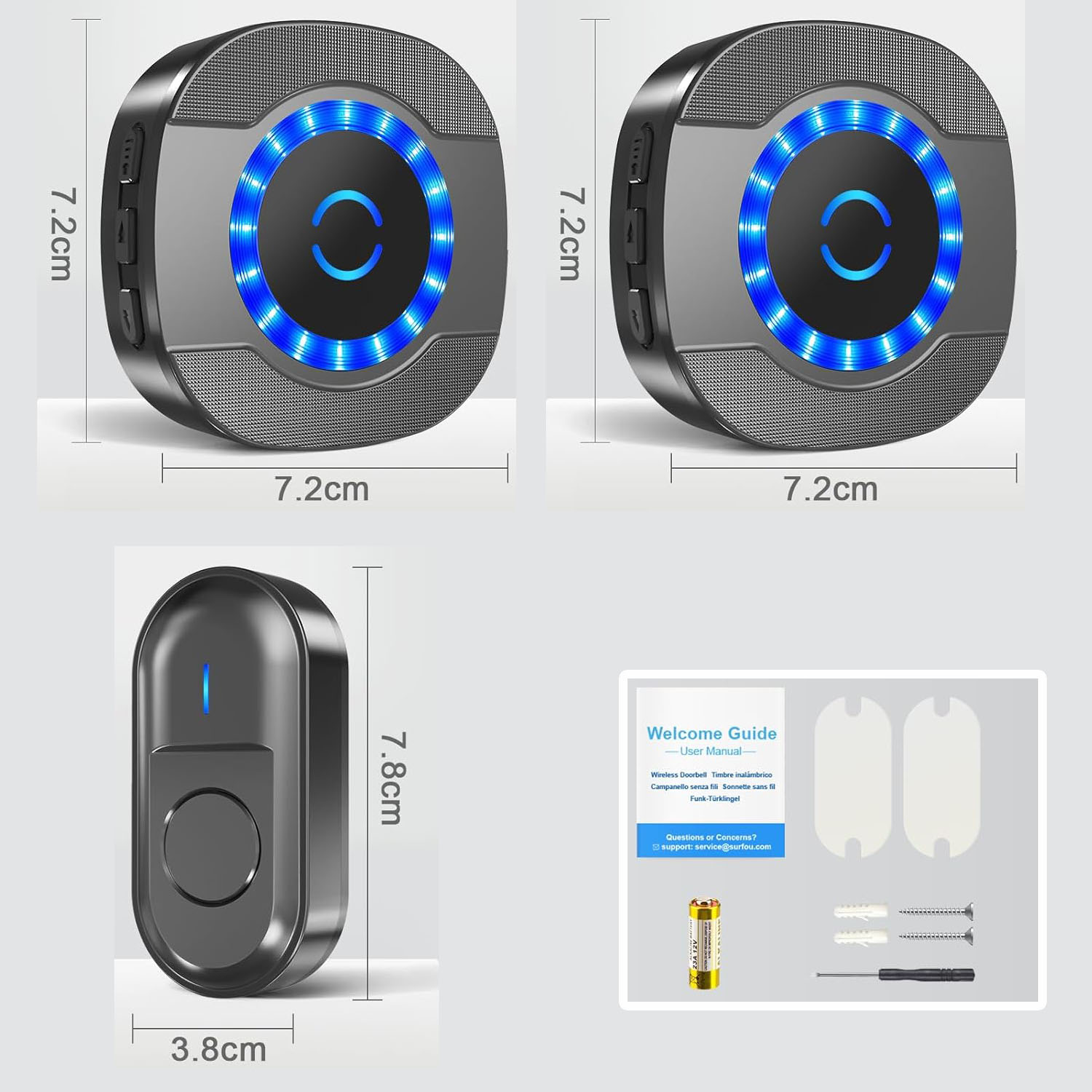 Bateria dureaza intre 1 si 3 ani, iar soneria ofera 5 nivele de volum si 55 de tonuri de apel, inclusiv optiuni personalizate si afisaj LED. Aceste caracteristici sunt perfecte pentru nevoile diverse ale utilizatorilor, inclusiv persoanele cu deficiente de auz sau varstnicii. Sfaturi: Distanta de 300 de metri se refera la un mediu deschis. In conditii de utilizare reale, distanta de detectare poate fi influentata de factori precum pereti, obstacole sau interferente din mediu. |