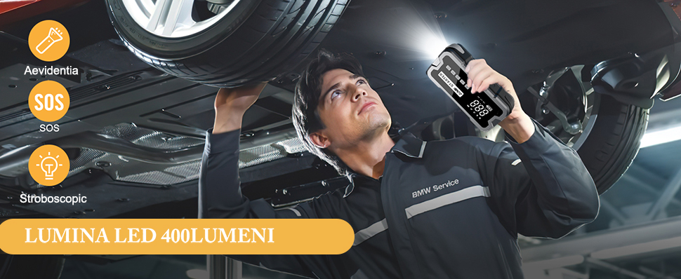 【Sursa de Pornire de Urgenta 4000A】Starter auto 4 in 1 pentru masina cu compresor de aer poate porni de urgenta majoritatea vehiculelor de 12 V, Potrivit pentru masini cu pentru 5.0L motor benzina/4.0L diesel, Atunci cand masina dvs. se Defecteaza pe drum,Poate porni intr-un timp scurt bateria interna va genera un curent de varf de pana la 4000A pentru a va trezi motorul defect fortati masina sa reporneasca, Incarcand pana la Poate fi pornit de 30 de ori, Potrivit pentru masini de 12 V, Motociclete, Barci, ATV-uri, UTV-uri, SUV-uri, Barci etc, Potrivit pentru calatoriile si urgentele dvs 【Sursa de Alimentare Mobila de Mare Capacitate 24000mAh】Starter auto multifunctional nu este doar un pachet de baterii de pornire de urgenta, Este un starter auto portabil cu o baterie de 24000 mAh, Este echipat cu 1 port de iesire de tip C si 2 iesiri USB de incarcare rapida 5V/2A QC3.0,Porturi , Ceea ce il face un incarcator portabil ideal pentru diverse dispozitive, Cum ar fi telefoane, Tablete si MacBook-uri, Trebuie doar sa porniti comutatorul ON/OFF, sa Faceti clic pe butonul de pornire si sa conectati cablul USB,Dimensiunea demarorului auto este de 20,9×9×6CM,Ceea ce este convenabil pentru transportul zilnic 【Afisaj Digital Compresor de Aer Fara Fir】Starter auto portabil cu afisaj LCD are un afisaj LED foarte mare si un design intuitiv,Setarea presiunii pentru a evita presiunea excesiva ,Starter auto multifunctional portabil are 3 tipuri de duze de aer care pot fi inlocuite la nevoie, Este potrivit pentru Masini motociclete, Biciclete,Iar modul de umflare poate fi reglat in orice moment in timpul procesului de umflare, Poate fi folosit si in mod normal in medii extreme (-10°), Oferindu-va liniste sufleteasca 【3 Moduri de Iluminare LED de Urgenta】Starter auto multifunctional de urgenta este, de Asemenea, Echipat cu lumina de urgenta LED, Care ofera 3 moduri de iluminare (Normal, Stroboscopic, SOS) in intuneric si situatii de urgenta si accepta 48 de ore de iluminare de inalta luminozitate,Aparatul are diverse protectii precum suprasarcina, Supracurent, Scurtcircuit, Conexiune inversa, Antiscantei,Incarcare inversa, etc, Permitandu-ti sa pornesti masina usor si rapid 【Tehnologie de Utilizare Ultra Sigura】Acest starter auto portabil de masina are mai mult de 10 protectii, Supraincarcare, Supracurent, Scurtcircuit, Conexiune inversa, Temperatura scazuta, Temperatura ridicata, Supratensiune, Suprasarcina, Antiscanteie, Incarcare inversa, permitandu-va sa operati usor si rapid in situatii extreme Porniti masina in conditii ambientale (-10°), Oferindu-va liniste sufleteasca, Chiar si incepatorii pot opera cu incredere |