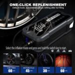 Starter auto multifunctional portabil cu afisaj LCD poate citi presiunea in anvelopa atunci cand este conectata la anvelopa si se opreste automat la setarea presiunii pentru a evita presiunea excesiva timp in timpul procesului de umflare, Exista 3 moduri preselectate (Masina, Motocicleta, Bicicleta) pe care le puteti alege singur, Ceea ce poate economisi timpul de pompare in cea mai mare masura. |