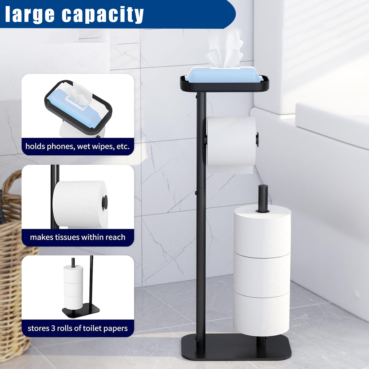 Suport Hartie Igienica, BYONDSELF®, 4 Role, Otel Inoxidabil, 60x20x16 Cm, Negru