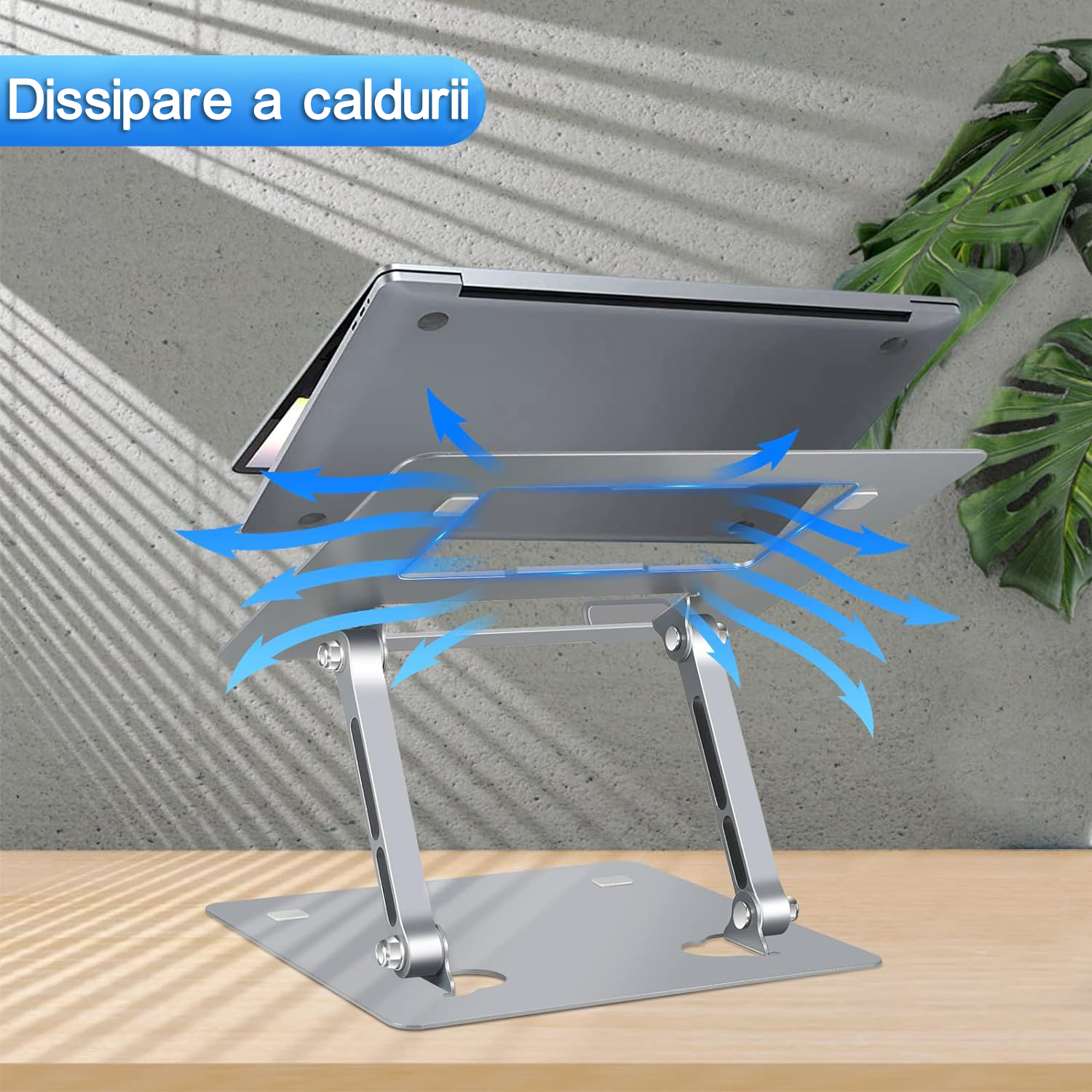 | Suport pentru laptop, BYONDSELF®, Portabil, Compatibil MacBook, Tableta iPad si telefon, Sarcina statica10 kg, Silicon non alunecos, 24×21×4cm, Gri argintiu |