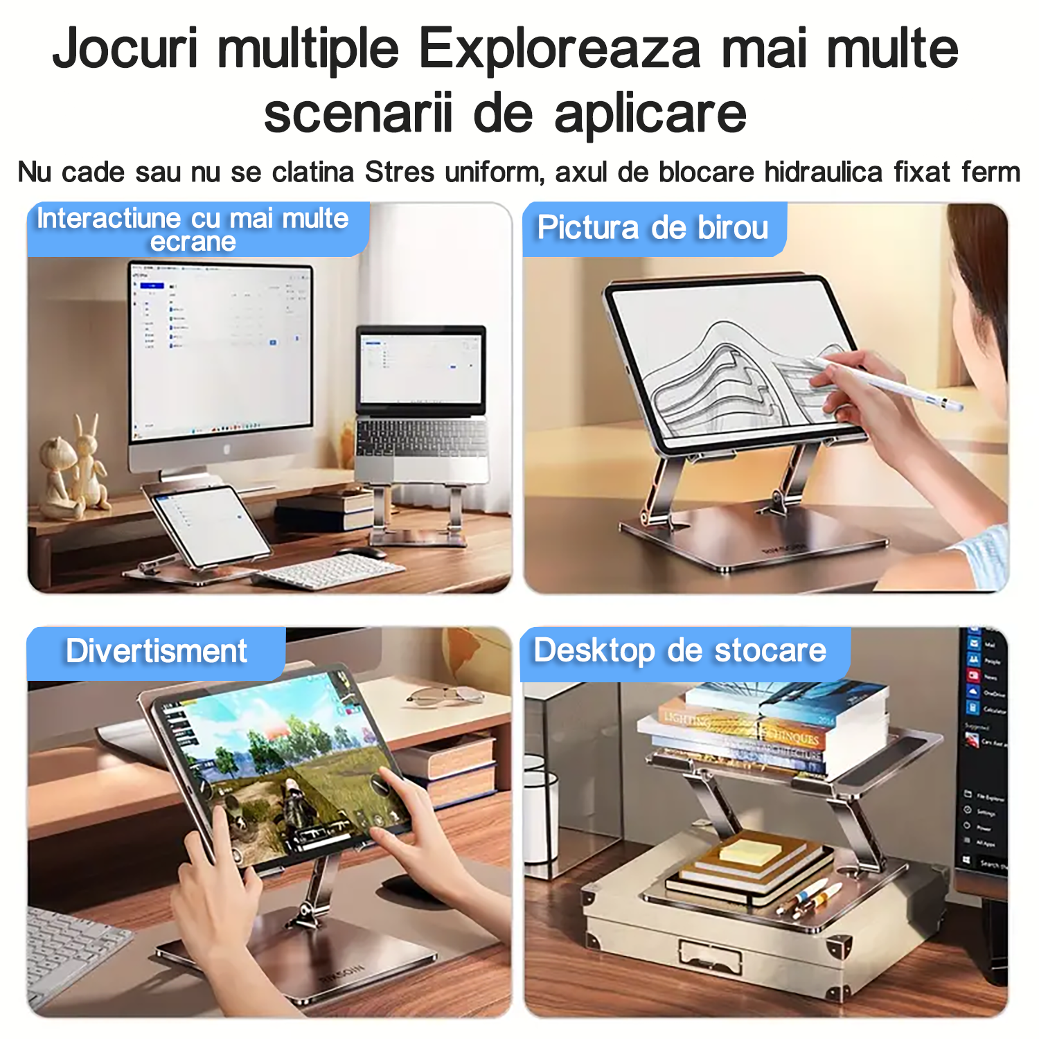 | 【Potrivit pentru o varietate de situatii】: Pentru cei care doresc sa utilizeze iPad-ul sau laptop in diferite imprejurari, suportul ajustabil pentru tableta BYONDSELF® reprezinta o solutie ideala. Poate fi folosit in diverse locatii, precum birouri, acasa la lucru, in sali de conferinte, in sufragerie, biblioteca, cafenea, bucatarie, fiind totodata un cadou excelent pentru prieteni si familie! |