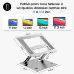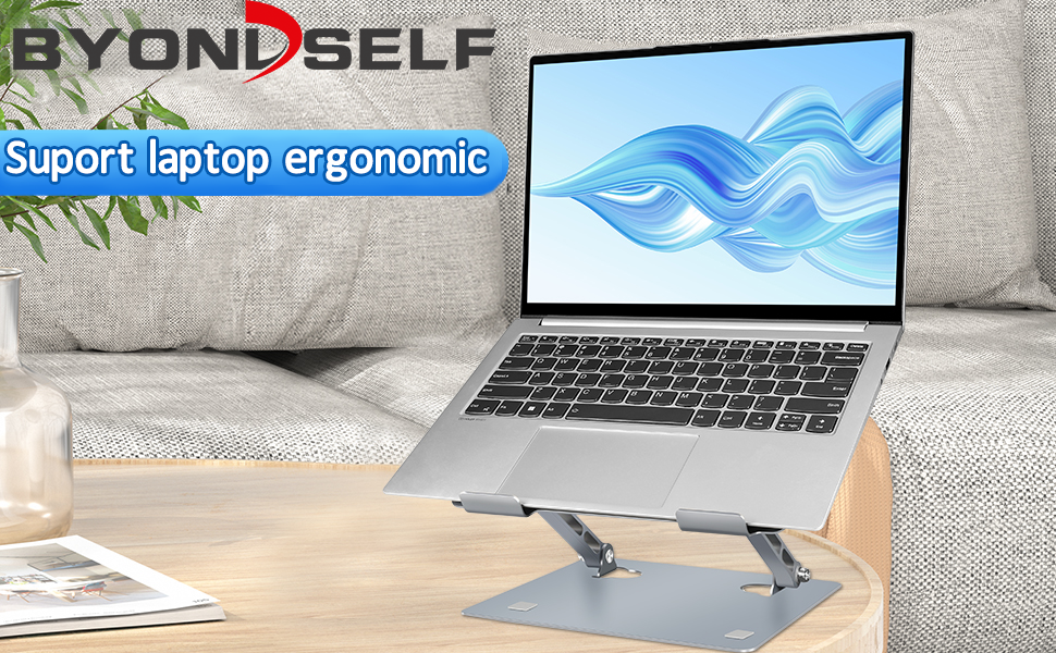 Suport laptop 11-17.3‘’, Pliabil, BYONDSELF®, Ergonomic, Inaltime reglabila 3.5-27 cm, Purtand 4 kg, Aluminiu, Silver