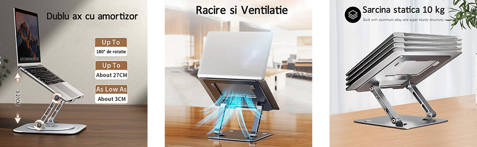 【Racire si Ventilatie】: Suportul pentru laptop are un design perforat pentru a oferi mai mult flux de aer si spatiu de racire, prevenind supraincalzirea laptopului. Materialul din aliaj de aluminiu are o textura fina, usor de curatat, rezistent la coroziune si zgarieturi, absorbind si disipand caldura eficient, prelungind astfel durata de viata a laptopului. 【Solid si stabil】:Suport tableta este fabricat din otel de calitate superioara si aliaj de aluminiu, cu un design integrat care asigura stabilitatea si durabilitatea, suportand o incarcatura statica de pana la 10 kilograme. |