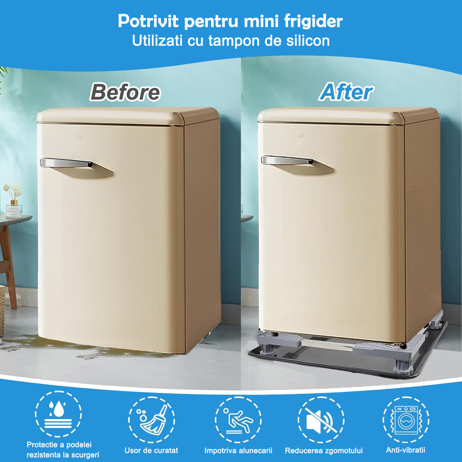 Suportul pentru masina de spalat/frigider/aragaz adopta un design stabil, rezistent la socuri, antiderapant si antizgomot, astfel incat locuinta dumneavoastra sa nu