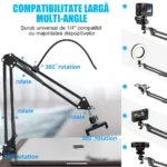 【cu rotatie nelimitata 360】Capul, articulatia sferica a bratului si baza sunt flexibile nelimitat, puteti regla unghiul si inaltimea bratului oscilant dupa dorinta dvs pentru a satisface diferitele dvs. scenarii de aplicare.