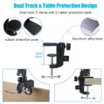 【Usor de instalat si dezasamblat】Suport de telefon de birou cu clema este multifunctional, dar simplu ca structura. Nu este nevoie de unelte, poate fi asezat pe scara larga, dulap, masa, biblioteca sau orice suprafata de pana la 5 cm grosime.