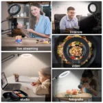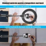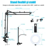 - Lampa circulara cu Brat Reglabil cu Menghina poate rezolva perfect problema de a nu avea un efect fotogenic bun din cauza inregistrarii video sau a transmisiei in direct.