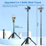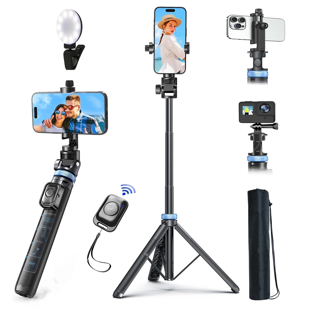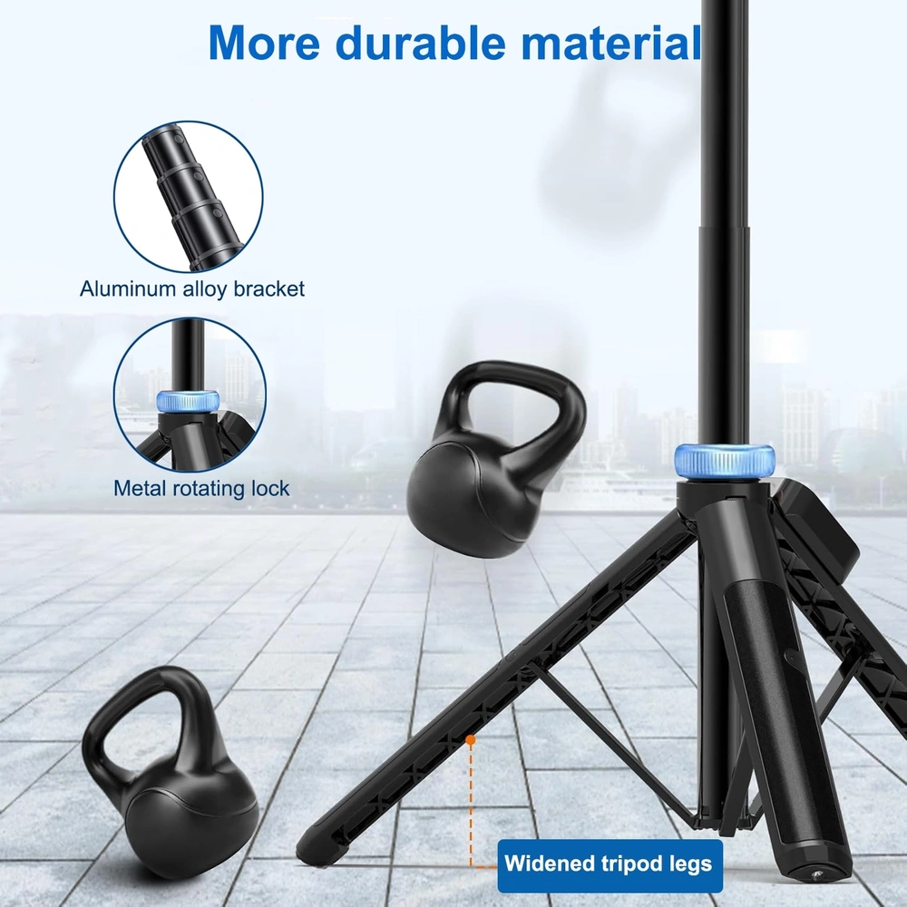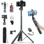 Trepied Foto Telescopic, BYONDSELF®, 160cm, cu Lumina de Umplere, 1/4 Filet, Geanta Depozitare, Functie Selfie Stick, Telecomanda Bluetooth Detasabila, pentru Camera Foto/Telefon/Gopro