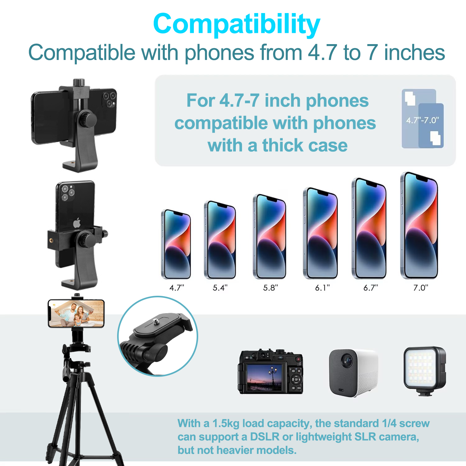 Trepiedul BYONDSELF este compatibil cu o gama larga de echipamente, inclusiv telefoane mobile, camere foto DSLR si GoPro. Acesta este un trepied profesional versatil, perfect pentru cei care doresc un trepied usor de utilizat si de incredere pentru toate tipurile de filmari si fotografii. Indiferent de tipul de echipament pe care il aveti, acest trepied se va adapta usor, asigurandu-va o stabilitate excelenta. |