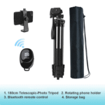 Trepiedul BYONDSELF are o dimensiune de depozitare de doar 54 cm si o inaltime maxima de 180 cm atunci cand este extins. Cu o greutate de doar 1,1 kg, acest trepied foto telescopic este extrem de usor si convenabil pentru transport. Indiferent daca calatoriti sau sunteti in aer liber, acest trepied foto telescopic premium profesional se poate transporta cu usurinta in geanta de transport inclusa, oferindu-va un suport stabil oriunde ati fi. 【Continutul Pachetului】 1.Telecomanda Bluetooth Acest trepied foto telescopic vine echipat cu o telecomanda Bluetooth, care va permite sa controlati de la distanta camera sau telefonul pentru a face poze sau inregistrari video, evitand astfel orice tremur cauzat de atingerea echipamentului, asigurand stabilitatea fiecarei imagini. 2.Suport Telefon Rotativ Pachetul include un suport telefon rotativ, care poate fi ajustat la 360° si este compatibil cu majoritatea modelelor de telefoane. Acesta permite fixarea rapida si usoara a telefonului pe trepied, oferind posibilitatea de a ajusta unghiul pentru capturarea celor mai bune cadre. 3.Geanta de Transport Pentru o utilizare usoara si transport convenabil, trepiedul BYONDSELF vine cu o geanta de transport. Aceasta protejeaza trepiedul in timpul transportului si il face usor de transportat, fie ca sunteti in vacanta sau intr-o sesiune foto in aer liber. |