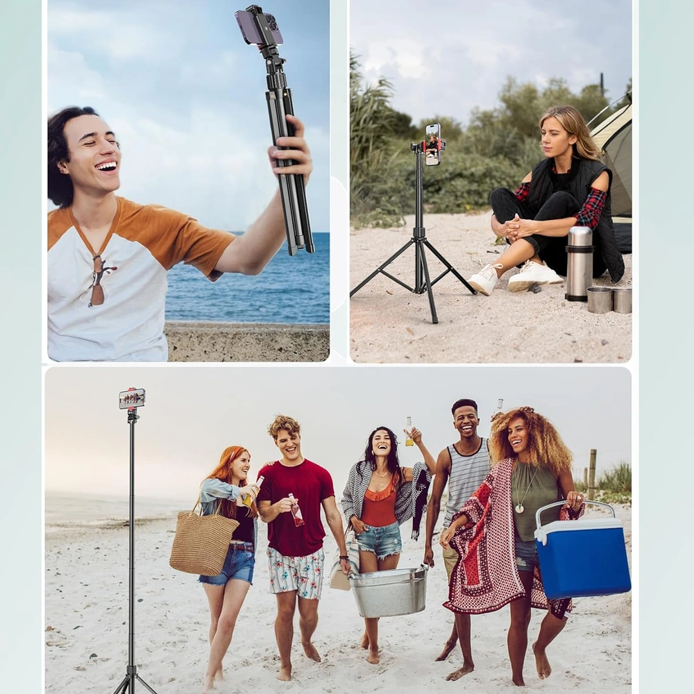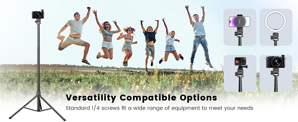 Acest trepied foto telescopic nu este doar compatibil cu telefoanele inteligente, ci vine echipat cu un filet standard de 1/4 inch, care permite utilizarea cu o gama larga de echipamente. Fie ca folosesti un smartphone, o camera foto profesionala sau o camera GoPro, acest trepied poate sustine toate aceste dispozitive fara probleme.