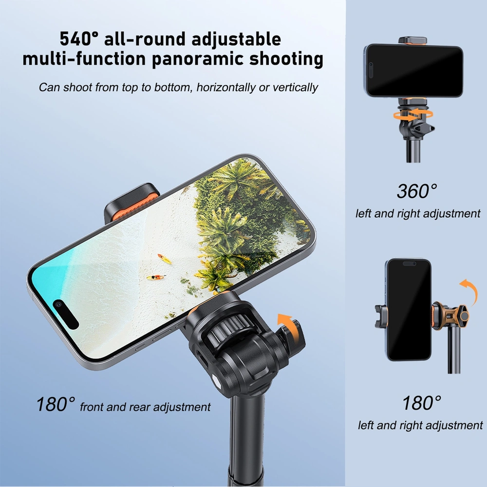 Trepied profesional echipat cu mecanism de rotatie 360° pe orizontala si 180° pe verticala, permitandu-ti sa captezi cele mai bune unghiuri din orice pozitie. Functia de rotatie verticala ofera flexibilitate maxima, permitandu-ti sa reglezi cu usurinta camera pentru a surprinde cele mai bune cadre. Indiferent ca filmezi sau fotografiezi, acest trepied foto telescopic premium profesional va fi perfect pentru nevoile tale creative.