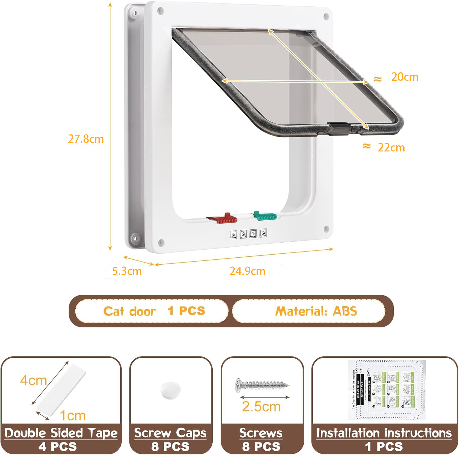 | Usa batanta pentru animale de companie, BYONDSELF®, ABS, XL 27.8 x 24.9 x 5.3 cm, 4 moduri de intrare/iesire, usa batanta pisici si caini de talie mica, Alb |