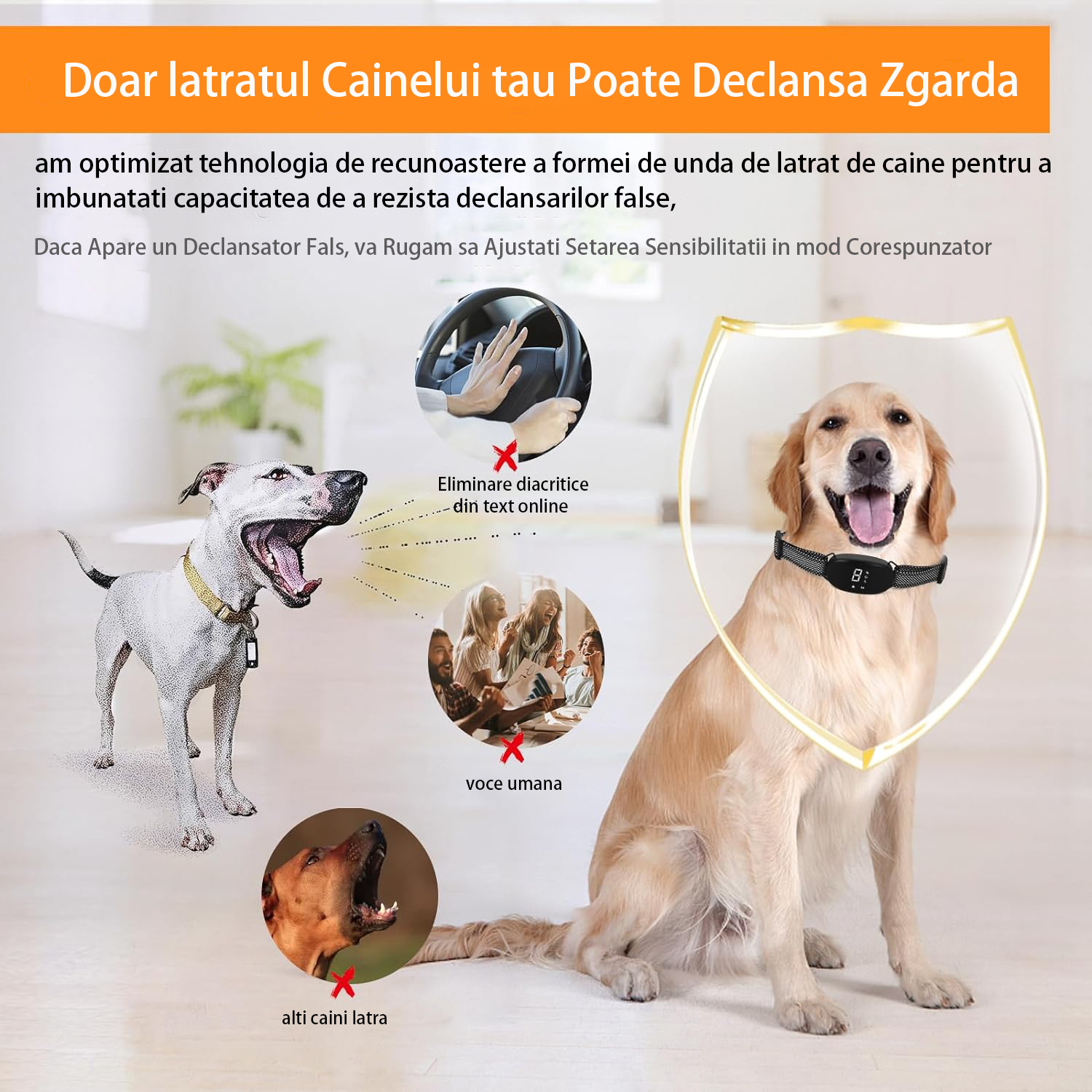 Zgarda antilatrat electrica pentru caini, BYONDSELF® 3 moduri, sunet, vibratii, soc static, 7 nivele, impermeabila IP67, afisaj LED