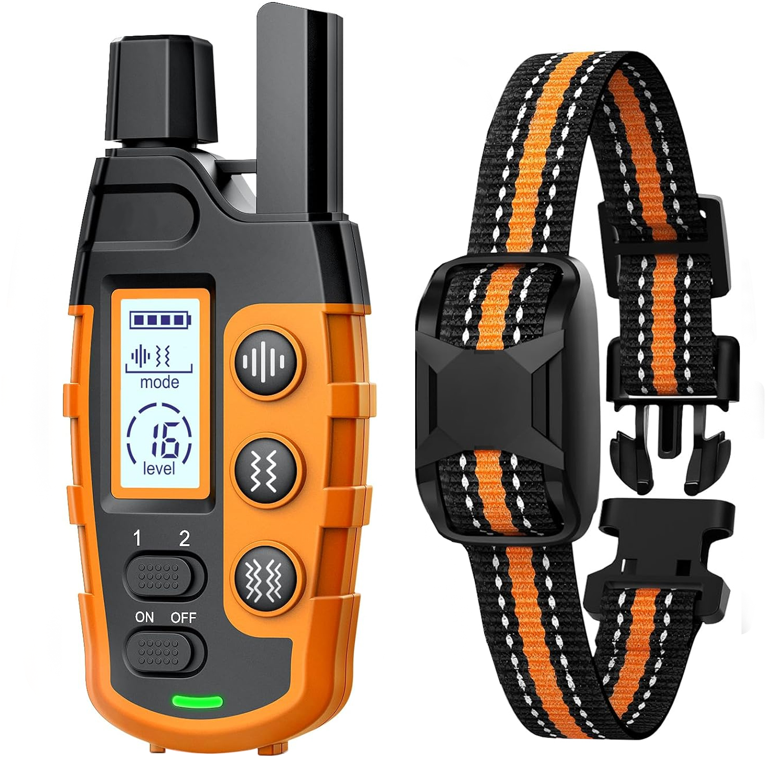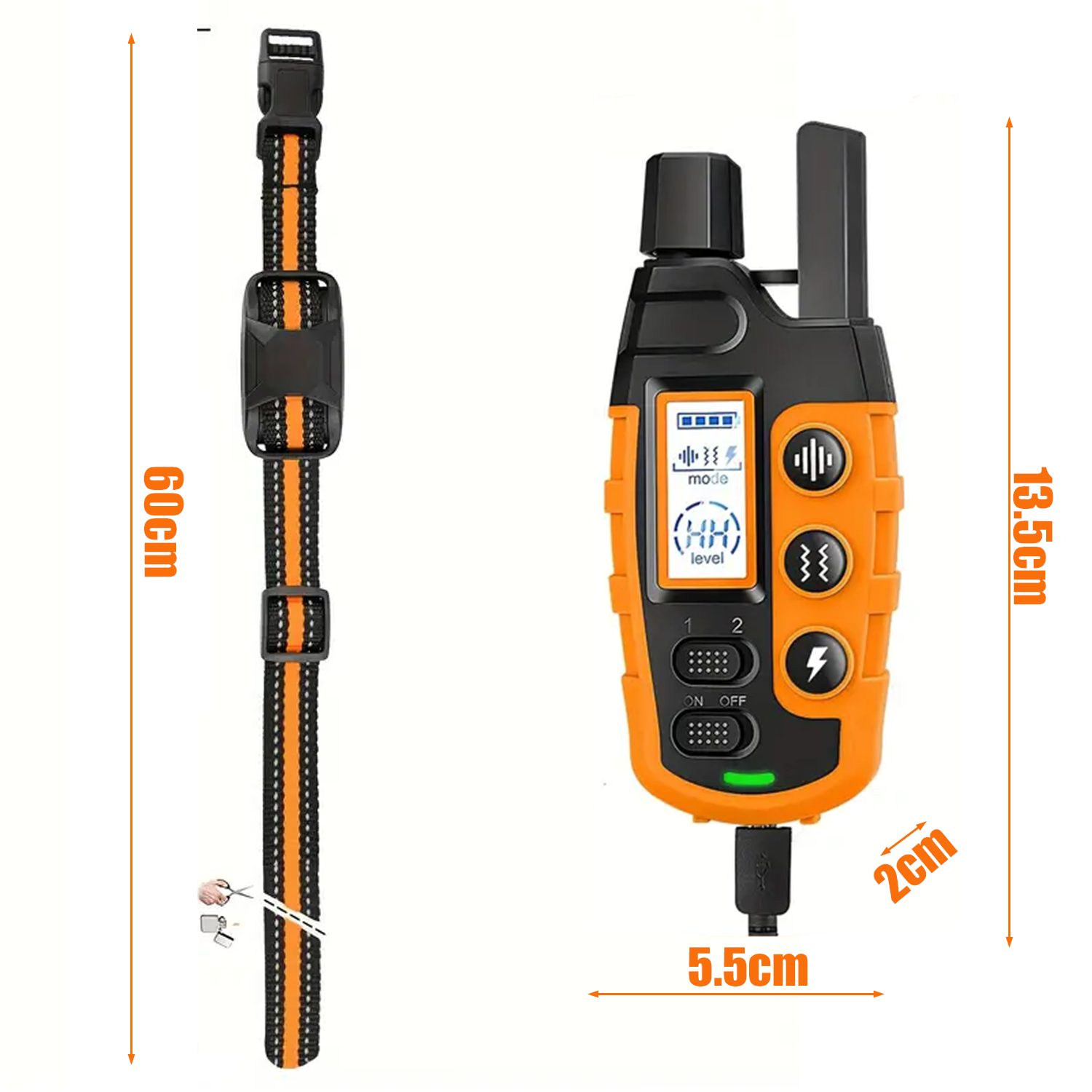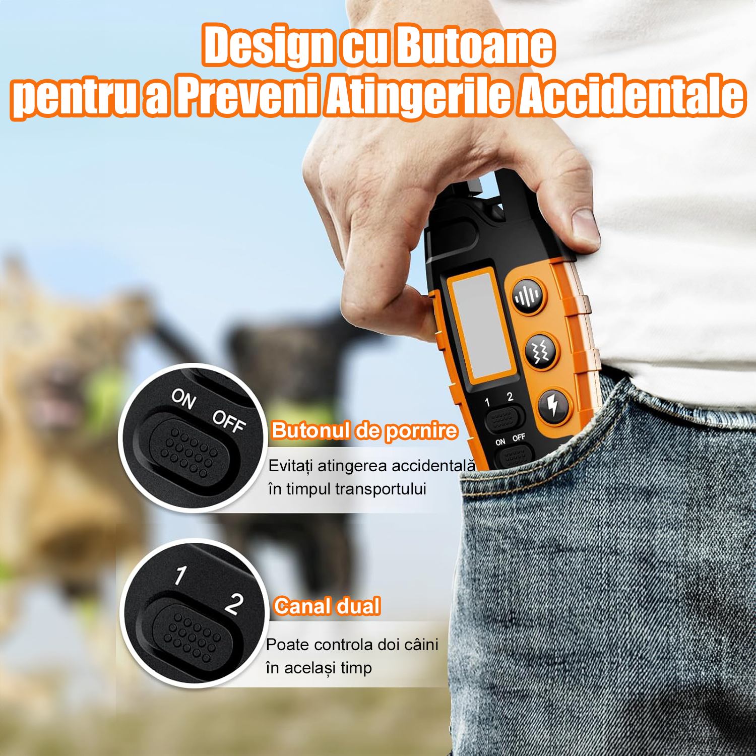 Zgarda Electrica Dresaj Caini, BYONDSELF®, Functie Antilatrat, Rezistenta la Apa si Praf (IP67), 1000m, 3 Moduri de Dresaj, pentru 2 Caini, Reincarcabila, Portocaliu