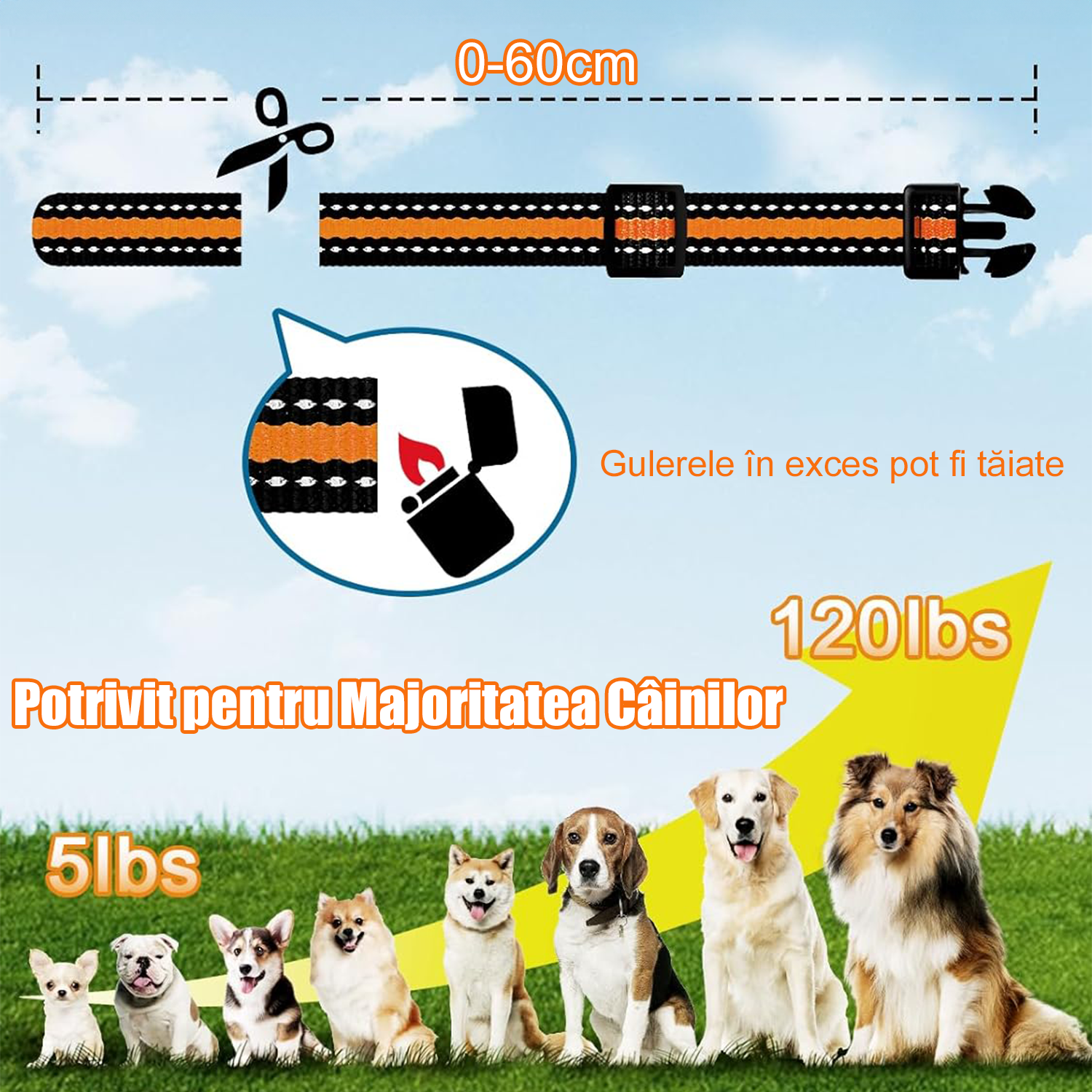 【Dimensiune reglabila a zgarzii】 Zgarda dresaj cu telecomanda se poate adapta cainilor cu circumferinta gatului de 0-60 cm, indiferent daca animalul dvs. de companie este un catel sau un caine foarte mare, poate fi aplicat.