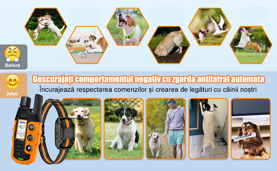 Zgarda electrica profesionala te poate ajuta sa-ti impiedici cainele de la rau si sa-ti ofere un inceput usor, dar eficient, schimband astfel obiceiurile proaste ale cainelui tau, cum ar fi latratul, distrugerea obiectelor si muscarea oamenilor. In acelasi timp, te ajuta sa inveti cainele tau noi abilitati si sa-ti ajuti catelul sa creasca rapid.