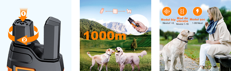 Rotiti butoanele este usor de reglat sunetul, vibratiile si intensitatea socurilor electrice pentru a dresa caini de toate dimensiunile.